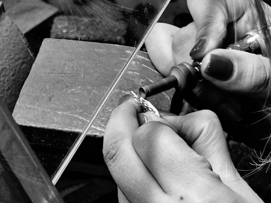 国内の熟練職人が、一点ずつ丁寧に製作します。仕上げ、磨き、耐久性、石留めなど、細かな基準に沿って検品を行い、記念品やブランドの核となる品にふさわしい品質を保ちます。